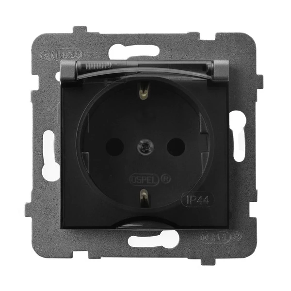 Simon 54 Gniazdo bryzgoszczelne z/u IP44 z klapką transparentną antracyt DGZ1BZ.01/48A