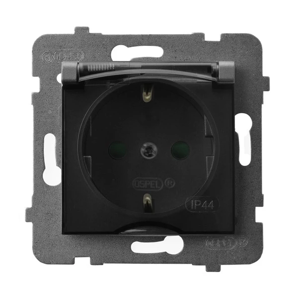 Simon 54 Gniazdo bryzgoszczelne z/u IP44 z klapką transparentną antracyt DGZ1BZ.01/48A