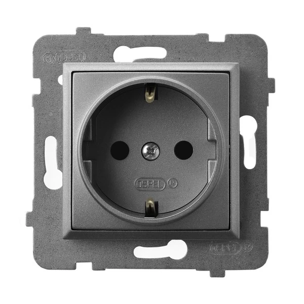 Gniazdo pojedyncze z uziemieniem schuko, szary mat ARIA o numerze katalogowym GP-1US/M/70 w kategorii Gniazda podtynkowe, Gniazda instalacyjne. Produkt wyprodukowany przez markę OSPEL, seria ARIA.