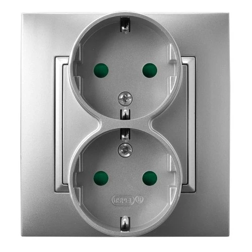 ARIA SREBRNY GNIAZDO 2X SCHUKO Z PRZESŁONAMI ZACISKI ŚRUBOWE 16A 250V