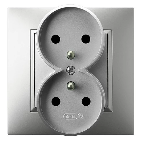Gniazdo podwójne z uziemieniem kompletne z ramką, srebro ARIA o numerze katalogowym GP-2UZ/18 w kategorii Gniazda podtynkowe, Gniazda instalacyjne. Produkt wyprodukowany przez markę OSPEL, seria ARIA.