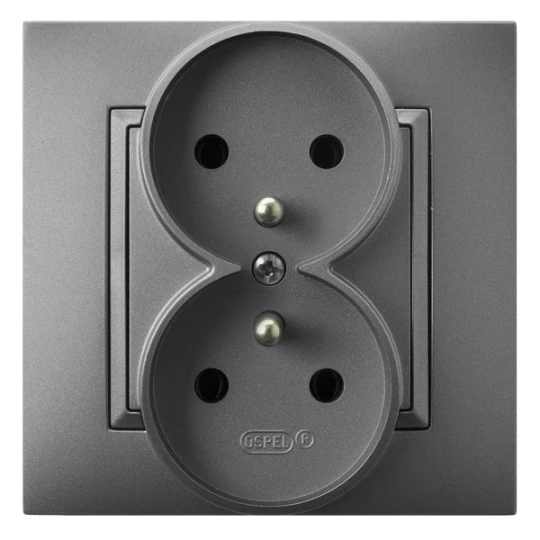 Gniazdo podwójne z uziemieniem kompletne z ramką, szary mat ARIA o numerze katalogowym GP-2UZ/70 w kategorii Gniazda podtynkowe, Gniazda instalacyjne. Produkt wyprodukowany przez markę OSPEL, seria ARIA.