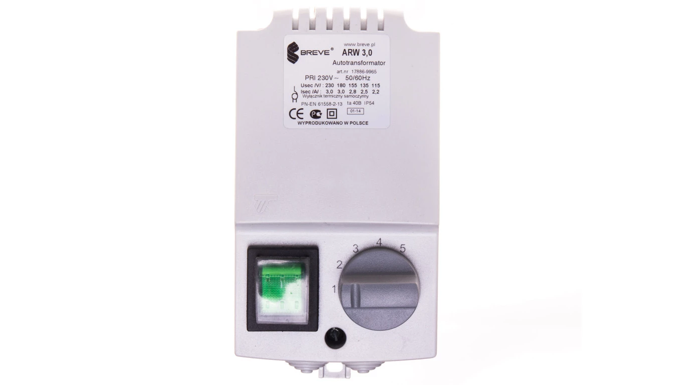 ARW 3.0/1 REGULATOR OBROTÓW WENTYLATORA AUTOTRANSFORMATOROWY 5-STOPNIOWY 1F 3.0A 230V AC IP54