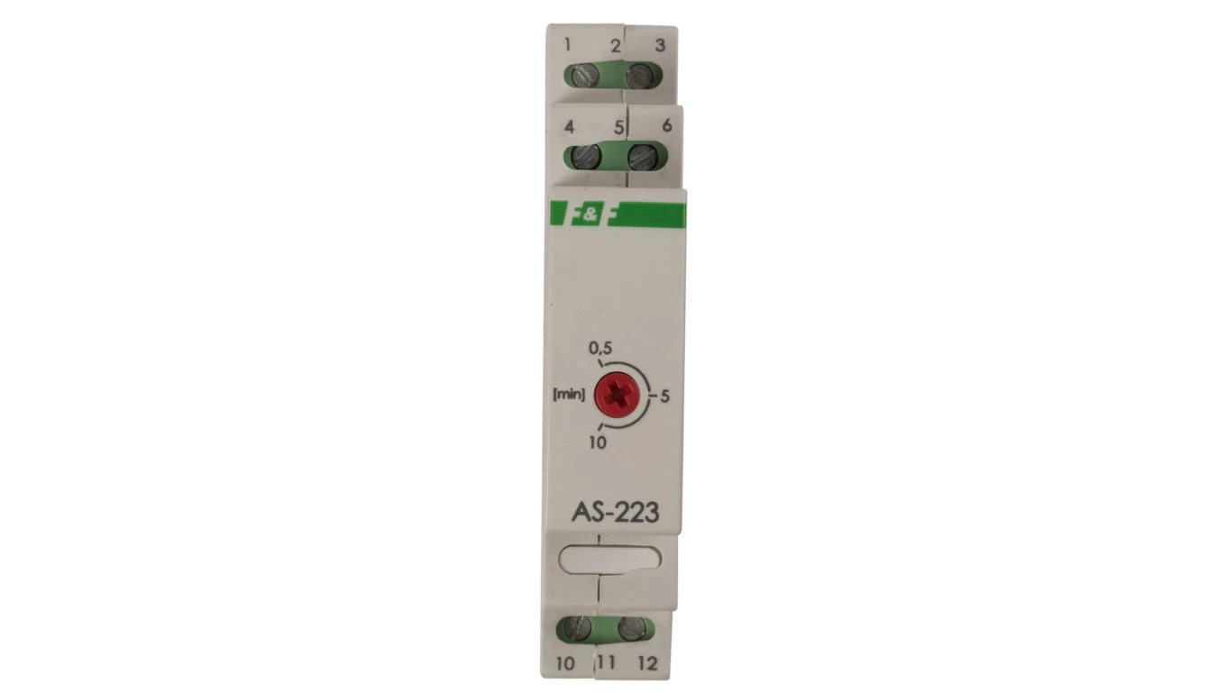 Automat schodowy AS-223 przeciwblokadą, Un=230V, I=16A, 1 moduł o numerze katalogowym AS-223 w kategorii Sterowniki, Aparatura sterująca. Produkt wyprodukowany przez markę F&F.