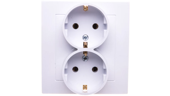 Gniazdo podwójne SCHUKO, biały, AS o numerze katalogowym GP-2GS/00 w kategorii Gniazda podtynkowe, Gniazda instalacyjne. Produkt wyprodukowany przez markę OSPEL, seria AS.
