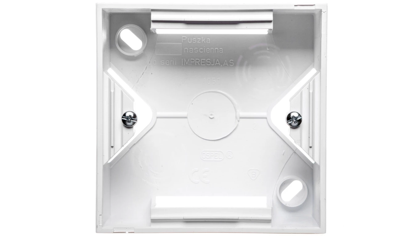 Puszka pojedyncza naścienna do serii As, biały, AS o numerze katalogowym PNP-1G/00 w kategorii Puszki natynkowe, Puszki instalacyjne. Produkt wyprodukowany przez markę OSPEL, seria AS.