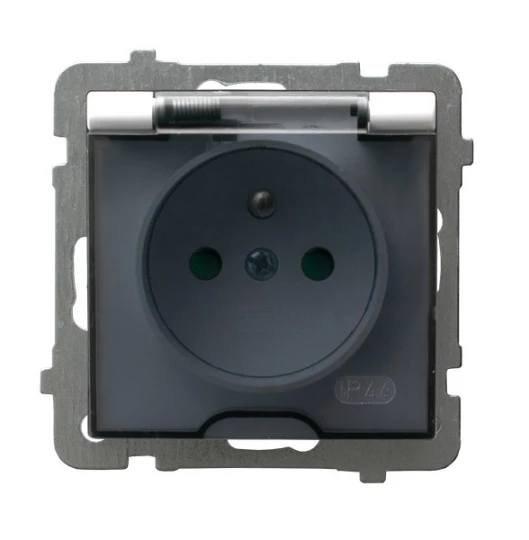 Simon 54 Gniazdo bryzgoszczelne z/u IP44 z klapką transparentną antracyt DGZ1BZ.01/48A