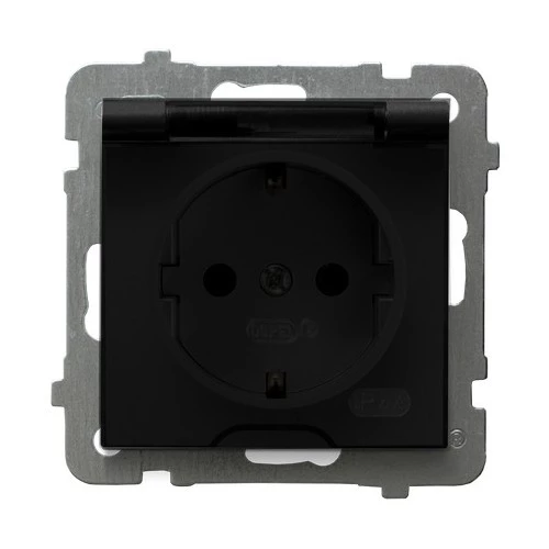 SONATA MODUŁ CZARNY METALIK GNIAZDO 1X SCHUKO Z KLAPKĄ DYMNĄ IP44 ZACISKI ŚRUBOWE 16A 250V