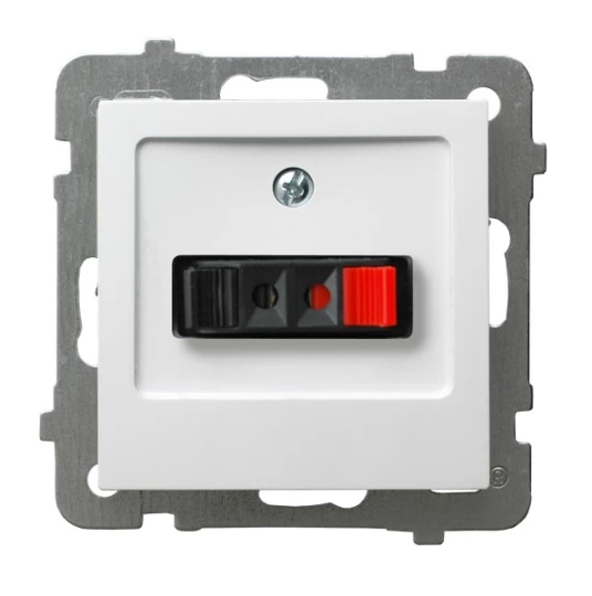 Gniazdo głośnikowe, pojedyncze, biały, AS o numerze katalogowym GG-1G/M/00 w kategorii Gniazda głośnikowe, Łączniki i gniazda instalacyjne. Produkt wyprodukowany przez markę OSPEL, seria AS.