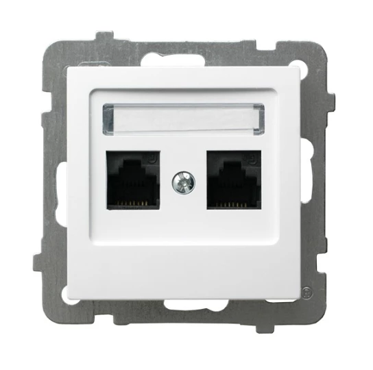 Gniazdo komputerowe, podwójne, kat. 5e MMC, biały, AS o numerze katalogowym GPK-2G/K/M/00 w kategorii Gniazda teleinformacyjne, multimedialne, Łączniki i gniazda instalacyjne. Produkt wyprodukowany przez markę OSPEL, seria AS.