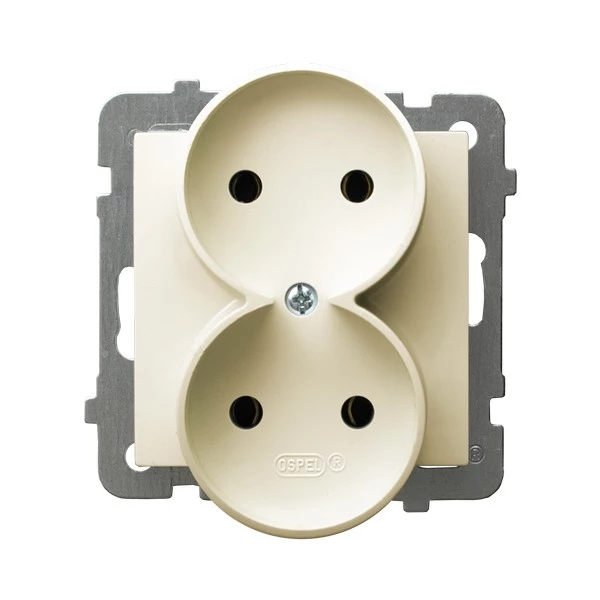 Gniazdo podwójne, do montażu w ramki, ecru, AS o numerze katalogowym GP-2GR/M/27 w kategorii Gniazda podtynkowe, Gniazda instalacyjne. Produkt wyprodukowany przez markę OSPEL, seria AS.