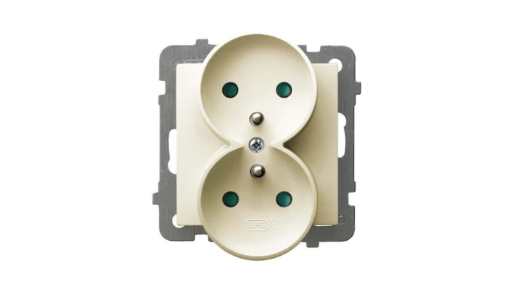 Gniazdo podwójne z uziemieniem, do montażu w ramki z przesłonami torów prądowych, ecru, AS o numerze katalogowym GP-2GRZP/M/27 w kategorii Gniazda podtynkowe, Gniazda instalacyjne. Produkt wyprodukowany przez markę OSPEL, seria AS.