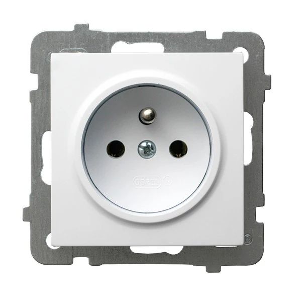 Gniazdo pojedyncze z uziemieniem, biały, AS o numerze katalogowym GP-1GZ/M/00 w kategorii Gniazda podtynkowe, Gniazda instalacyjne. Produkt wyprodukowany przez markę OSPEL, seria AS.