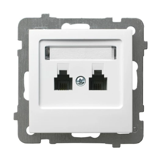 Gniazdo telefoniczne podwójne równoległe, biały, AS o numerze katalogowym GPT-2GR/M/00 w kategorii Gniazda teleinformacyjne, multimedialne, Łączniki i gniazda instalacyjne. Produkt wyprodukowany przez markę OSPEL, seria AS.