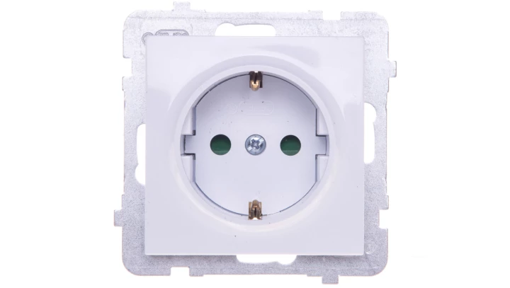Gniazdo pojedyncze z uziemieniem SCHUKO z przesłonami torów prądowych, biały, AS o numerze katalogowym GP-1GSP/M/00 w kategorii Gniazda podtynkowe, Gniazda instalacyjne. Produkt wyprodukowany przez markę OSPEL, seria AS.