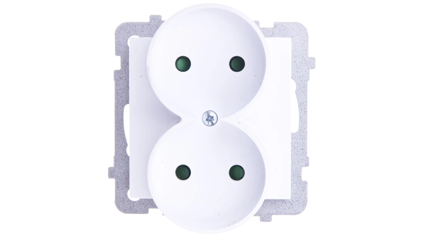Gniazdo podwójne, do montażu w ramki z przesłonami torów prądowych, biały, AS o numerze katalogowym GP-2GRP/M/00 w kategorii Gniazda podtynkowe, Gniazda instalacyjne. Produkt wyprodukowany przez markę OSPEL, seria AS.