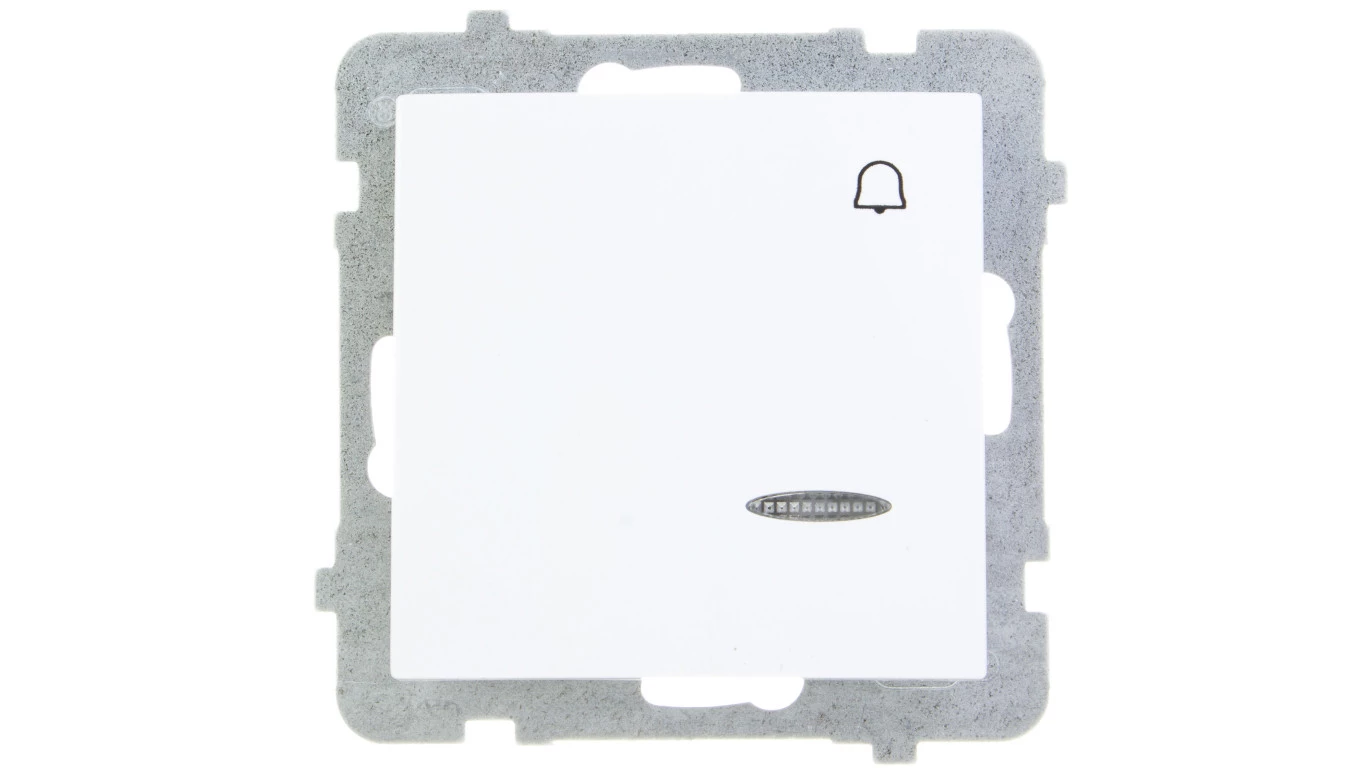 Łącznik zwierny "dzwonek" z podświetleni em pomarańczowym, biały, AS o numerze katalogowym ŁP-6GS/M/00 w kategorii Przyciski podtynkowe dzwonki, Przyciski dzwonkowe. Produkt wyprodukowany przez markę OSPEL, seria AS.