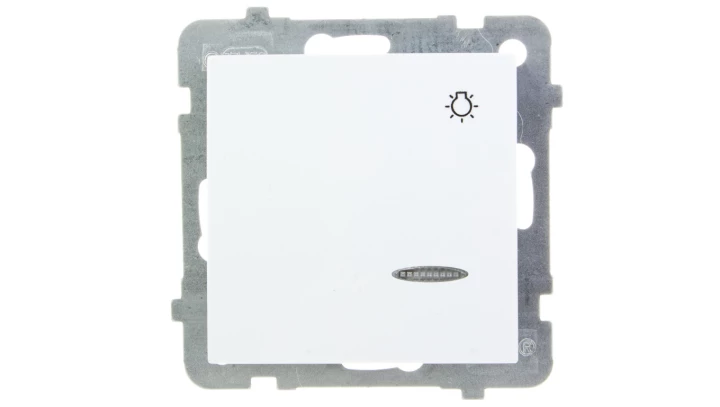 Łącznik zwierny "światło" z podświetleni em pomarańczowym, biały, AS o numerze katalogowym ŁP-5GS/M/00 w kategorii Przyciski podtynkowe "światło", Przyciski "światło". Produkt wyprodukowany przez markę OSPEL, seria AS.
