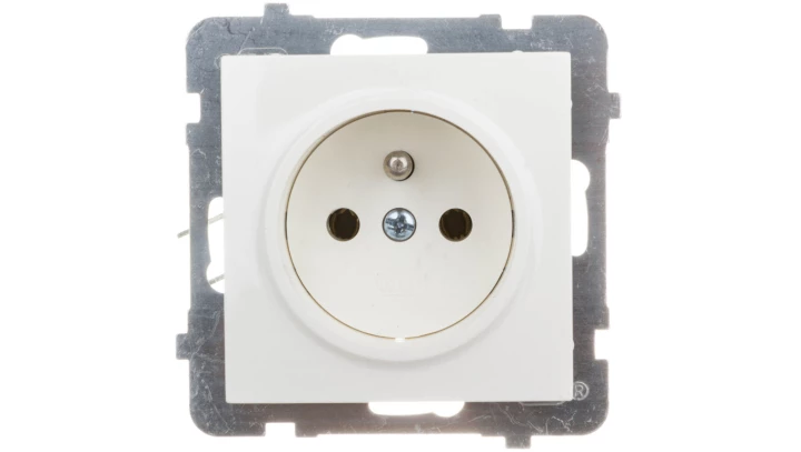 Gniazdo pojedyncze z uziemieniem, ecru, AS o numerze katalogowym GP-1GZ/M/27 w kategorii Gniazda podtynkowe, Gniazda instalacyjne. Produkt wyprodukowany przez markę OSPEL, seria AS.