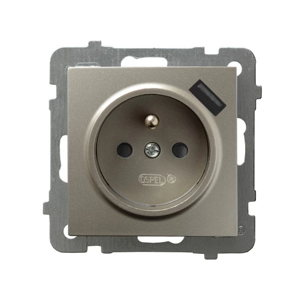 AS MODUŁ SATYNA LIGHT GNIAZDO 1X Z/U Z PRZESŁONAMI ZACISKI SPRĘŻYNOWE + ŁADOWARKA USB 16A 250V