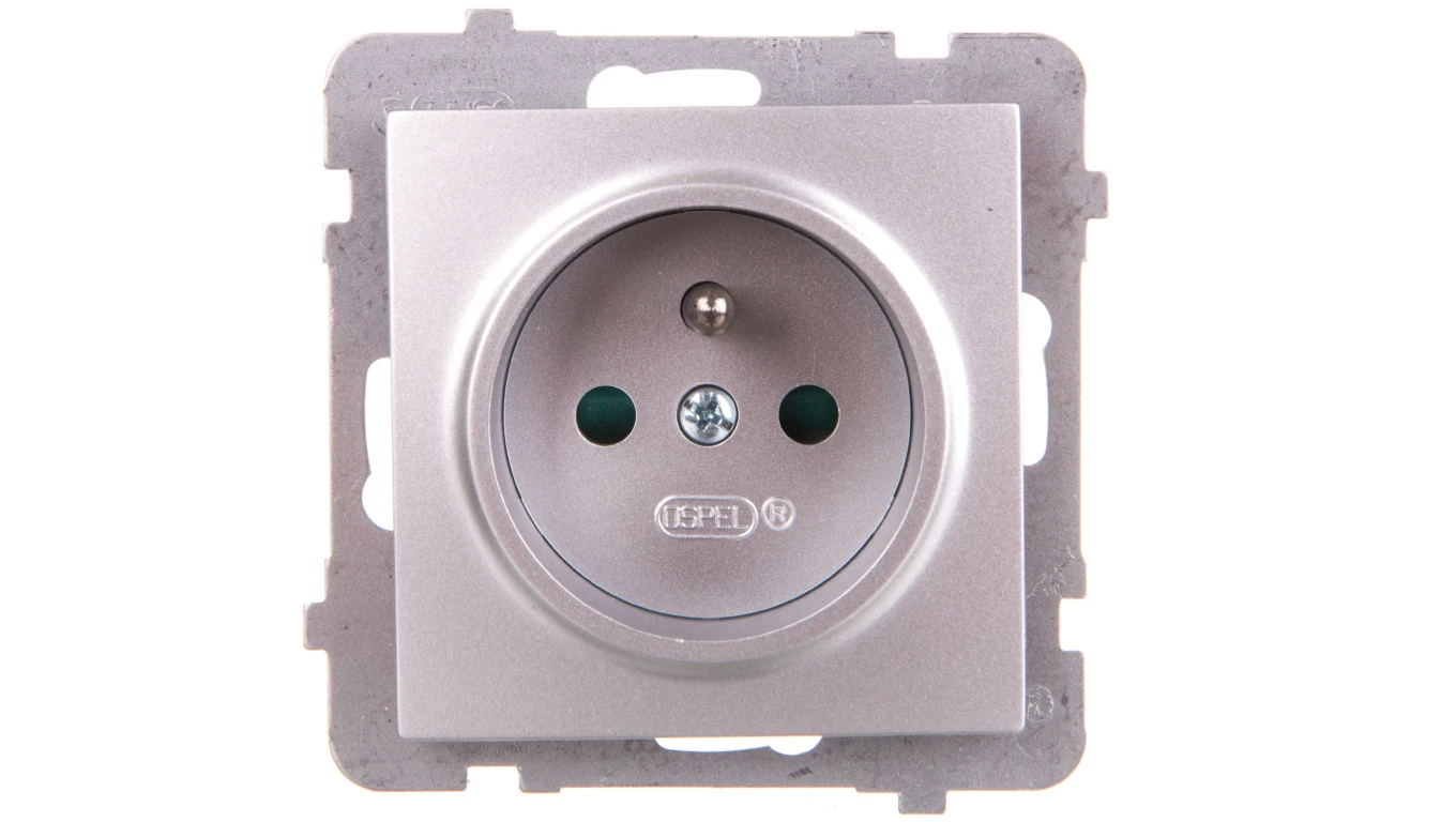 AS MODUŁ SREBRNY GNIAZDO 1X Z/U Z PRZESŁONAMI ZACISKI ŚRUBOWE 16A 250V