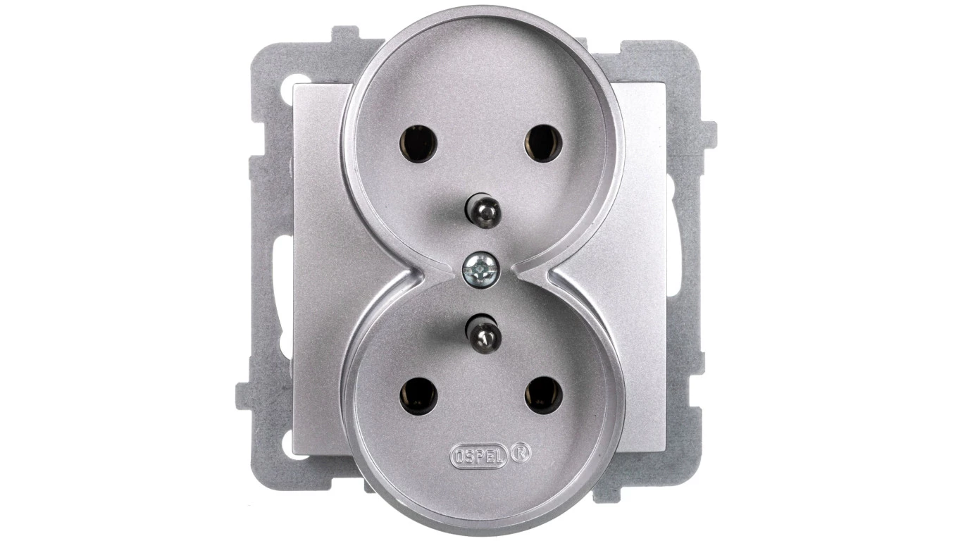 AS MODUŁ SREBRNY GNIAZDO 2X Z/U ZACISKI ŚRUBOWE 16A 250V