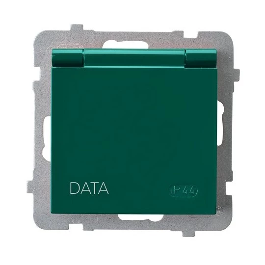 AS MODUŁ ZIELONY GNIAZDO BRYZGOSZCZELNE 1X Z/U DATA Z KLAPKĄ ZIELONĄ IP-44 ZACISKI ŚRUBOWE
