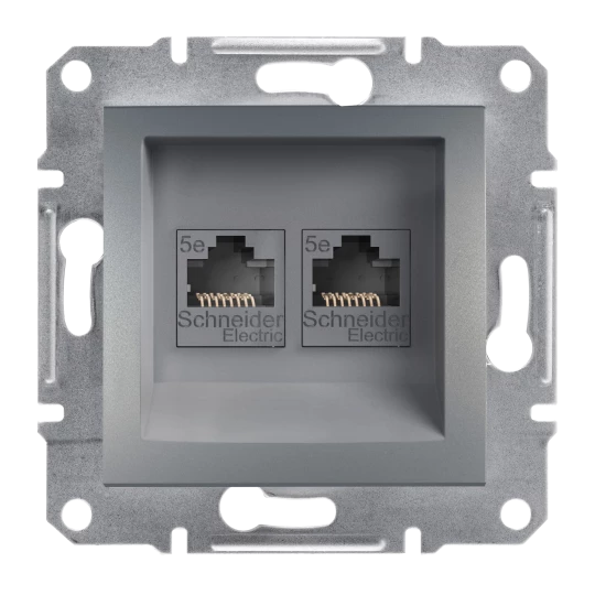 Gniazdo komputerowe 2x kat.5e UTP bez ramki, stal ASFORA o numerze katalogowym EPH4400162 w kategorii Gniazda teleinformacyjne, multimedialne, Łączniki i gniazda instalacyjne. Produkt wyprodukowany przez markę SCHNEIDER ELECTRIC, seria ASFORA.