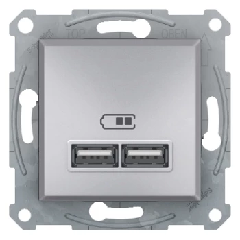 Asfora Gniazdo ładowarki USB prąd ładowania 2.1A bez ramki aluminium EPH2700261