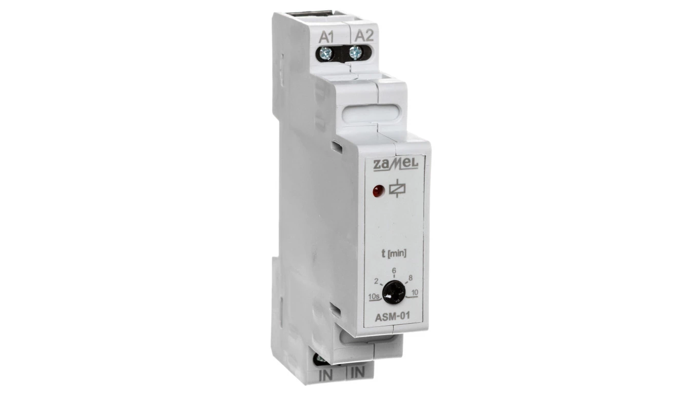 Automat schodowy 12-240V AC/DC Typ: ASM-01/U o numerze katalogowym EXT10000005 w kategorii Przekaźniki czasowe, Przekaźniki. Produkt wyprodukowany przez markę ZAMEL, seria EXTA.