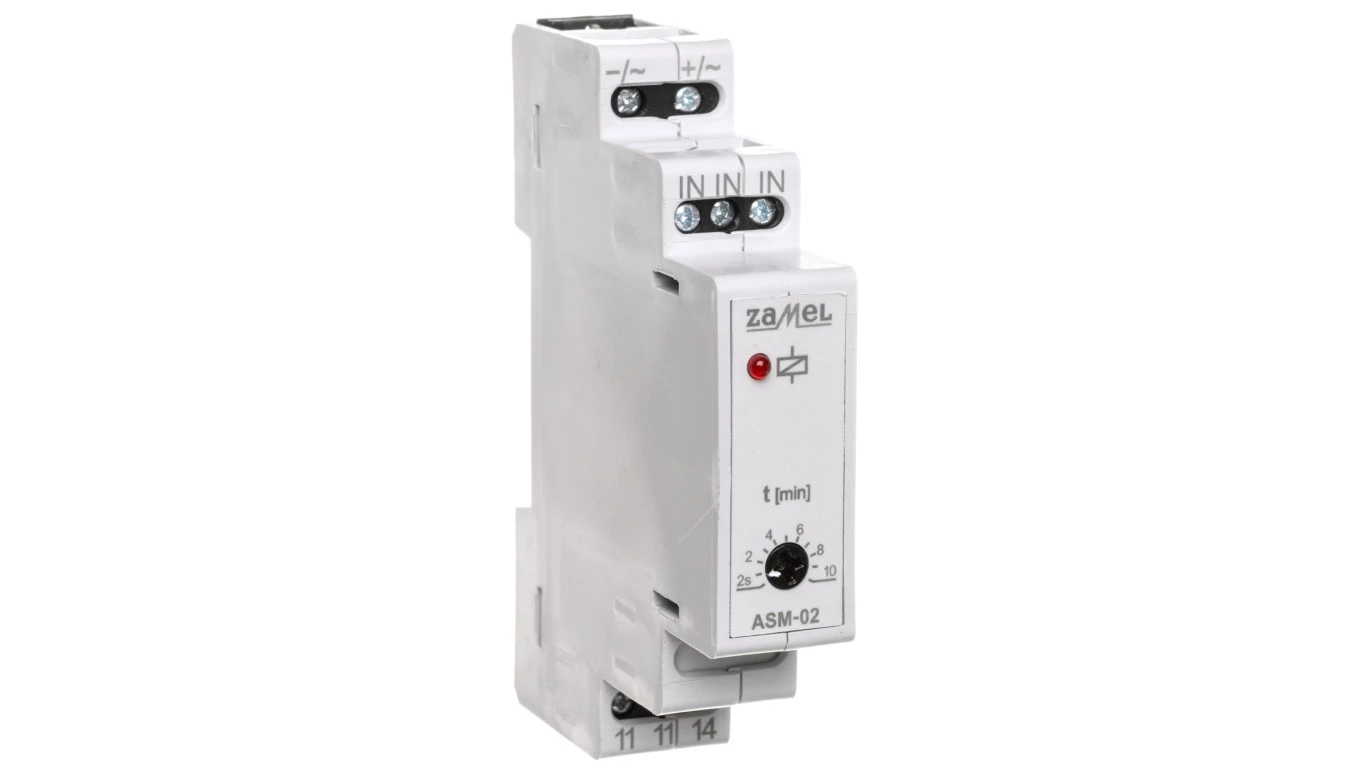 Automat schodowy 24V AC/DC Typ: ASM-02/24V o numerze katalogowym EXT10000007 w kategorii Przekaźniki czasowe, Przekaźniki. Produkt wyprodukowany przez markę ZAMEL, seria EXTA.
