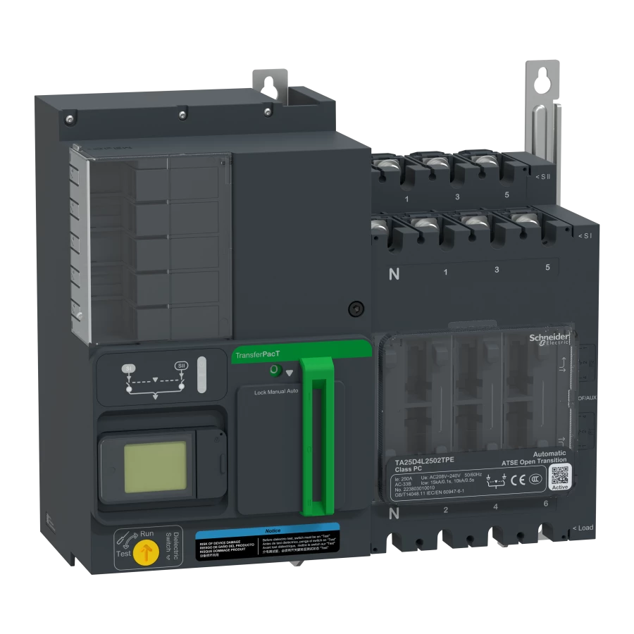 Automatyczny Przełącznik Zasilania TransferPacT Active Automatic, 100A, 230V, 4P, LCD, rozmiar 250A TA25D4L1002TPE