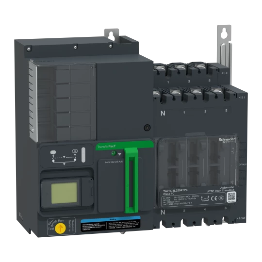 Automatyczny Przełącznik Zasilania TransferPacT Active Automatic, 200A, 400V, 4P, LCD, rozmiar 250A TA25D4L2004TPE