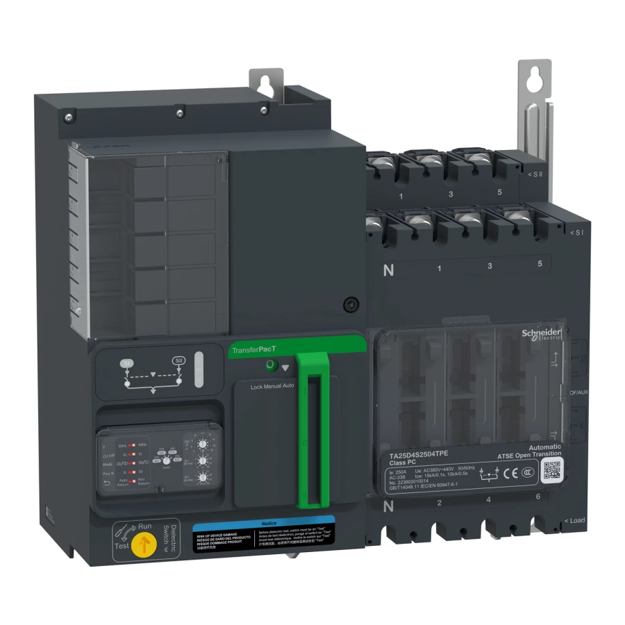 Automatyczny Przełącznik Zasilania TransferPacT Automatic, 250A, 400V, 4P, z pokrętłem, rozmiar 250A TA25D4S2504TPE