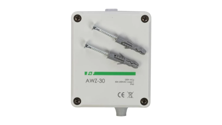 Automat zmierzchowy AWZ-30 I=30A, obudowa hermetyczna, zintegrowana puszka przyłącza IP65 o numerze katalogowym AWZ-30 w kategorii Czujniki i sondy, Aparatura sterująca. Produkt wyprodukowany przez markę F&F.