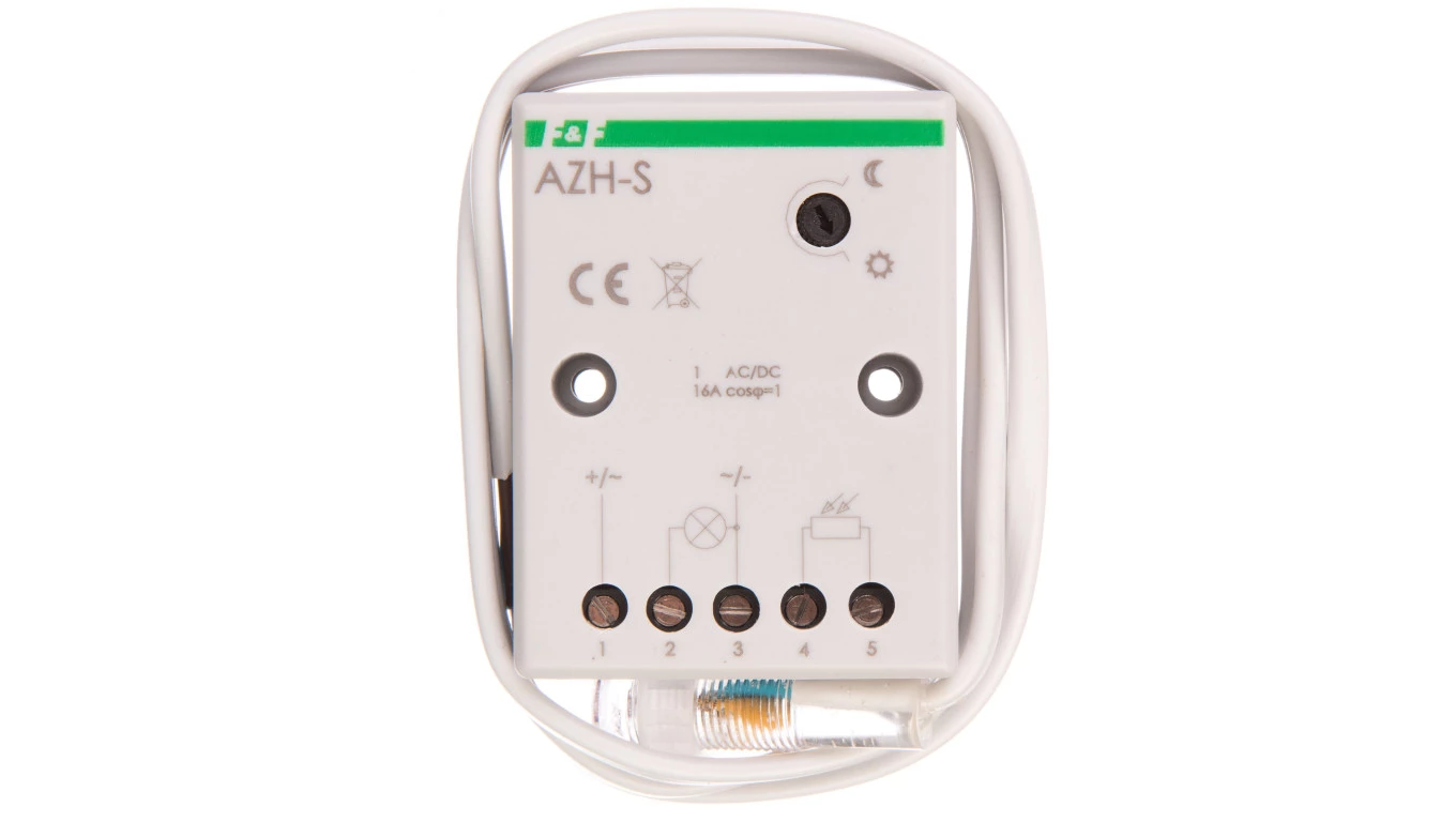 Automat zmierzchowy z zewnętrzną sondą hermetyczną AZH-S - wykonanie specjalne Un=12V~ Io<16A z sondą hermetyczną montaż natablicowy o numerze katalogowym AZH-S-12V w kategorii Czujniki i sondy, Aparatura sterująca. Produkt wyprodukowany przez markę F&F.