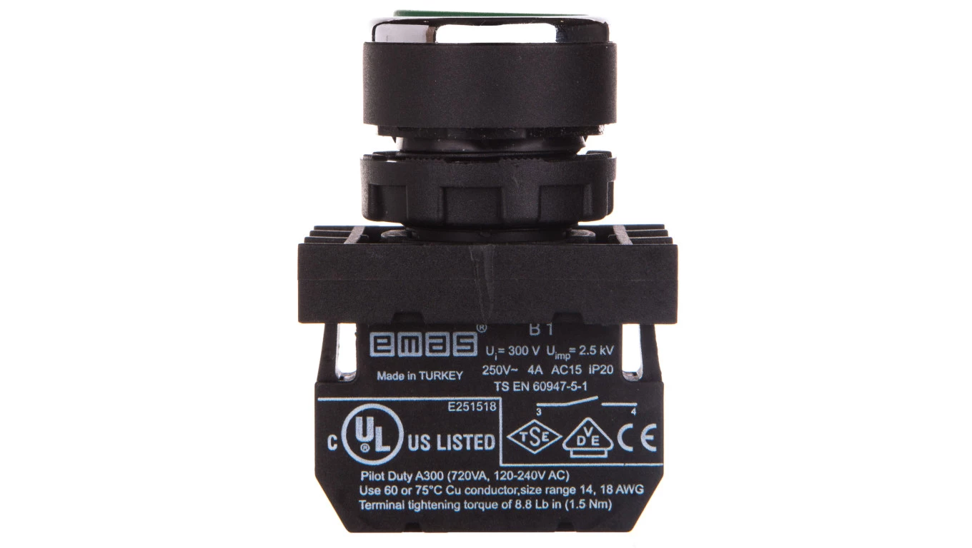 Przycisk sterowniczy 22mm zielony 1Z 1R z samopowrotem z podświetleniem ST22-KLZ-11-230-BA9S\.