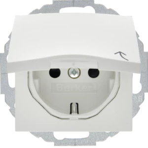 Berker B.1/B.3/B.7 GLAS Gniazdo Schuko z pokrywą i przesłonami styków śnieżnobiałe 47441909