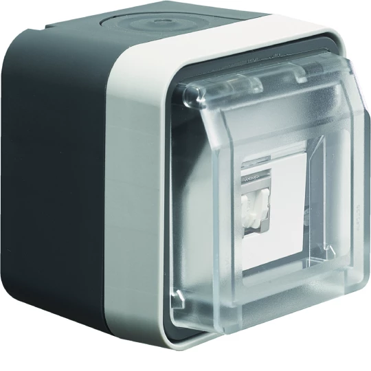 Berker W.1 Gniazdo teleinformatyczne UAE 8 RJ45 kat.6 z pokrywą kompletne IP55 szary 14093505