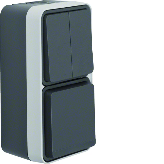 Berker W.1 Łącznik seryjny z gniazdem SCHUKO pionowy kompletny IP55 biały 47903515