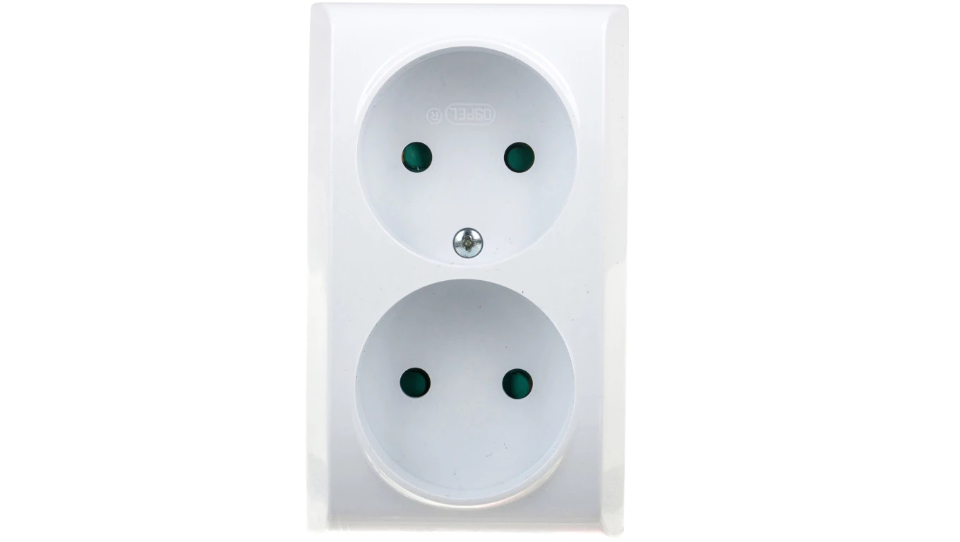 Gniazdo podwójne z uziemieniem, z funkcją niezamienności faz, N/T IP20, biały BIS o numerze katalogowym GN-2BP/00 w kategorii Gniazda natynkowe, Gniazda instalacyjne. Produkt wyprodukowany przez markę OSPEL, seria BIS.