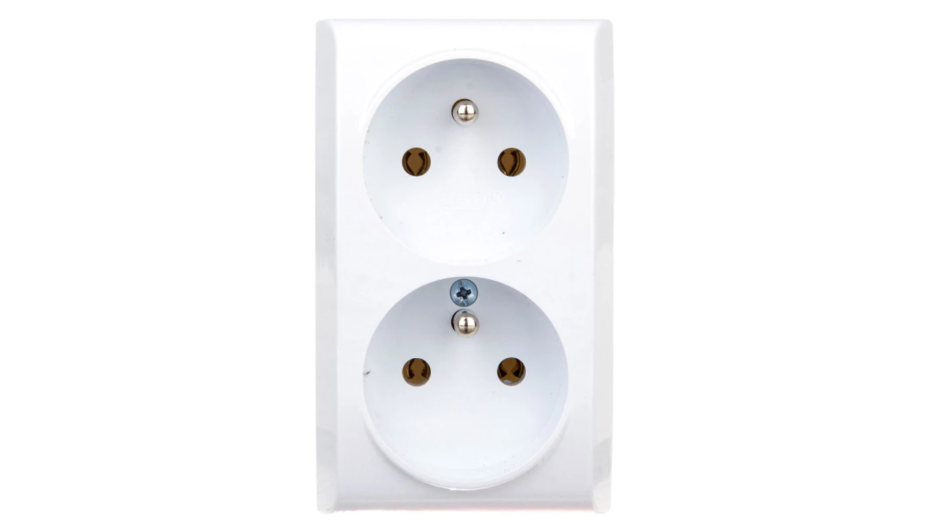 BIS BIAŁY GNIAZDO NT 2X Z/U Z FUNKCJĄ NIEZAMIENNOŚCI FAZ IP20 ZACISKI ŚRUBOWE 16A 250V