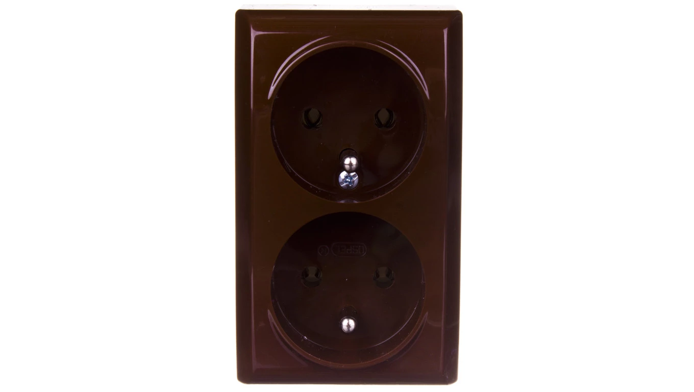 Gniazdo podwójne, z przesłonami torów prądowych, N/T IP20, brąz BIS o numerze katalogowym GN-2BC/24 w kategorii Gniazda natynkowe, Gniazda instalacyjne. Produkt wyprodukowany przez markę OSPEL, seria BIS.