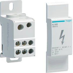 Blok rozdzielczy In=125A 1P 36kA 1x35+1x16/6x16 o numerze katalogowym KJ02D w kategorii Pozostałe wyposażenie, Wyposażenie i akcesoria. Produkt wyprodukowany przez markę HAGER.