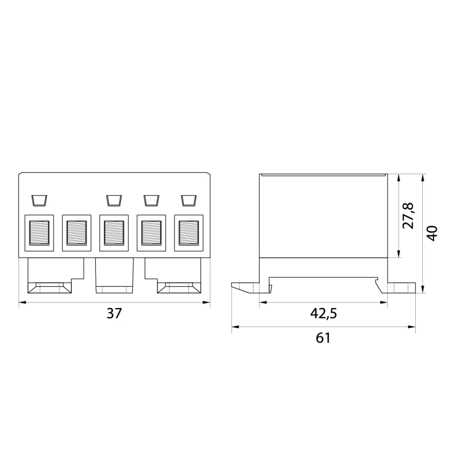 Blok rozdzielczy-odgałęźny 5x3-polowy AL/CU 5x16mm2 montaż płaski i na szynę TH WLZ35/5x16/sssnz 48.35516