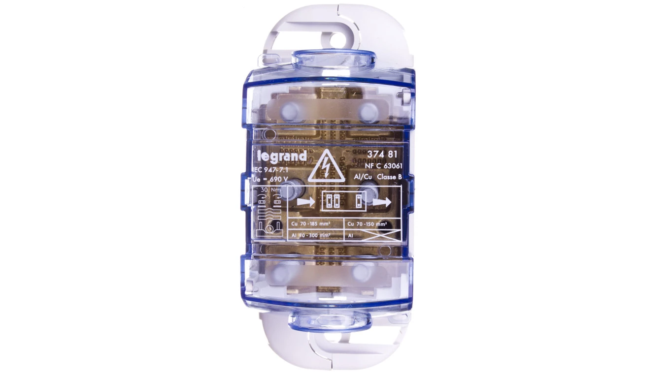 Blok rozdzielczy 300 mm2 Al, 185 mm2 cu o numerze katalogowym 037481 w kategorii Pozostałe, Niesklasyfikowane. Produkt wyprodukowany przez markę LEGRAND, seria ELEMP.
