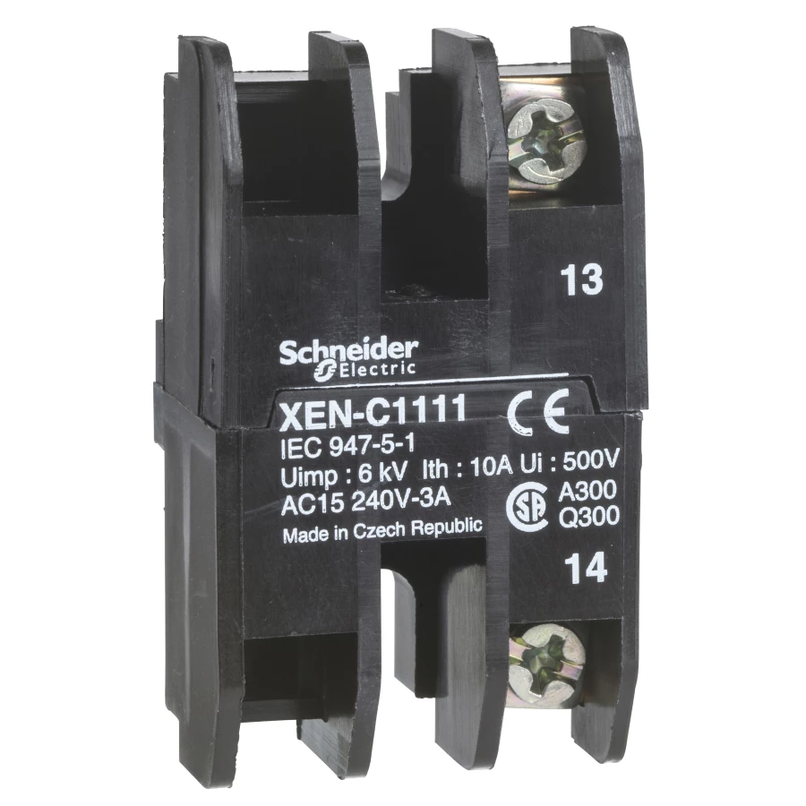 Blok styków z sam. powr., 1 NC+1 NO, montaż czoł., 30 lub 40mm rozstawu XENC1151
