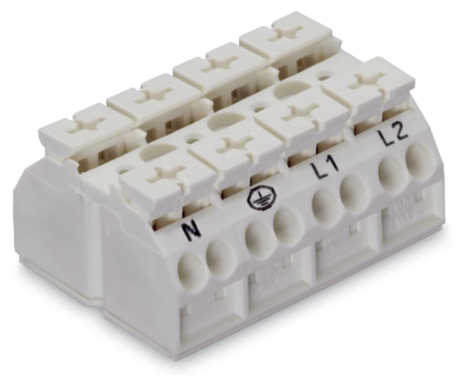 Blok zasilający 4-biegunowy biały nadruk N-PE-L1-L2 862-2604 /200szt./
