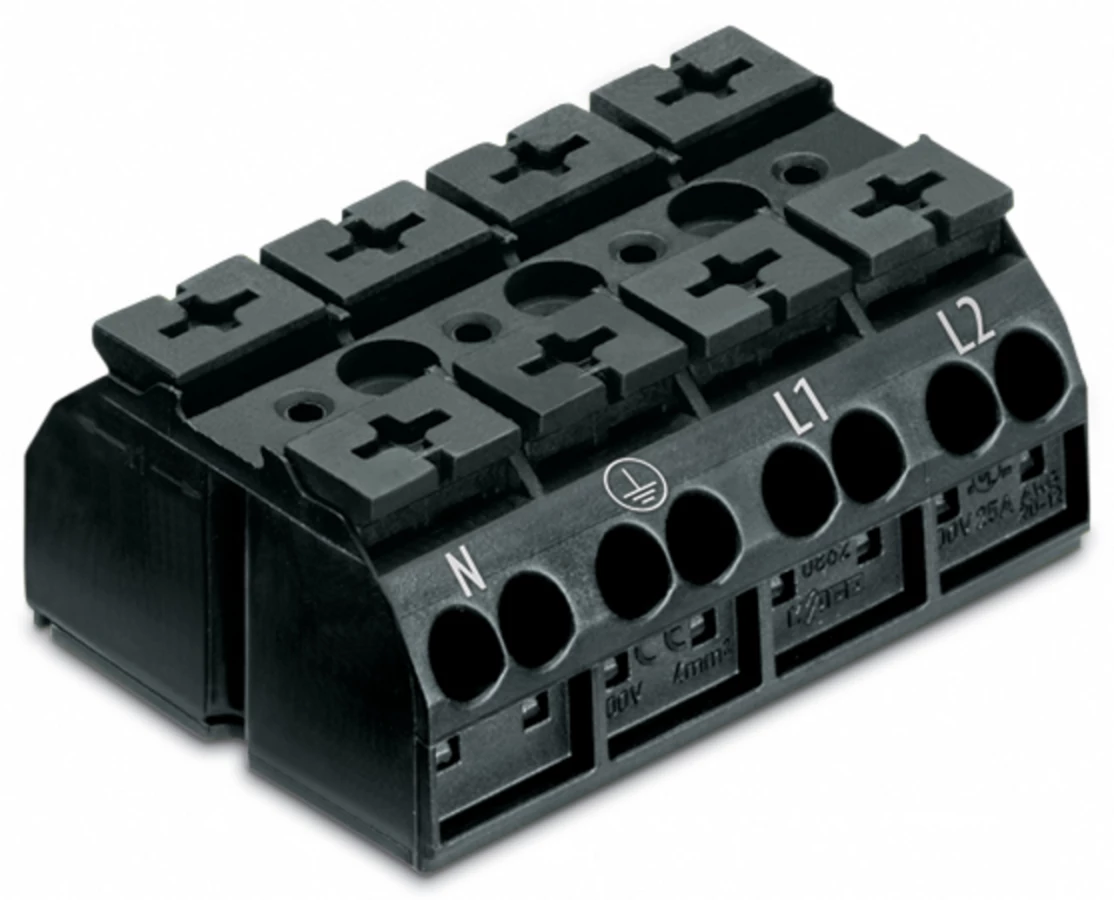 Blok zasilający 4-biegunowy czarny nadruk PE-N-L1-L2 862-1504/999-950 /200szt./