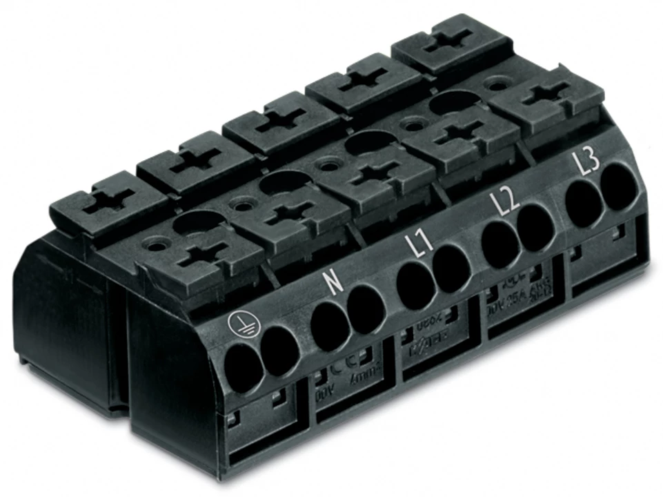 Blok zasilający 5-biegunowy czarny nadruk PE-N-L1-L2-L3 862-1505/999-950 /200szt./